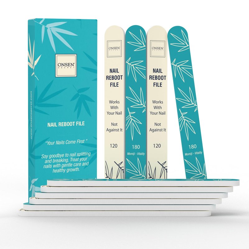 Onsen Secret Japanese Nail File - Professional 10-Pack Nail Files, Double Sided Natural & Acrylic Nail Filers - 120/180 Grit - Disposable, Salon Smooth | Best Onsen Nail File for Shiny Nails