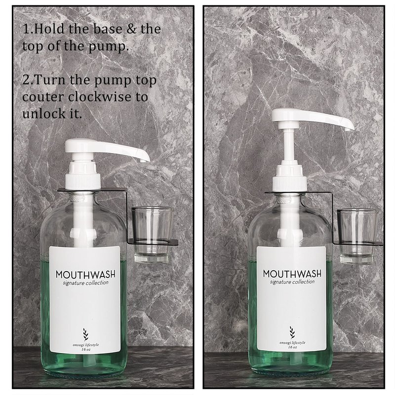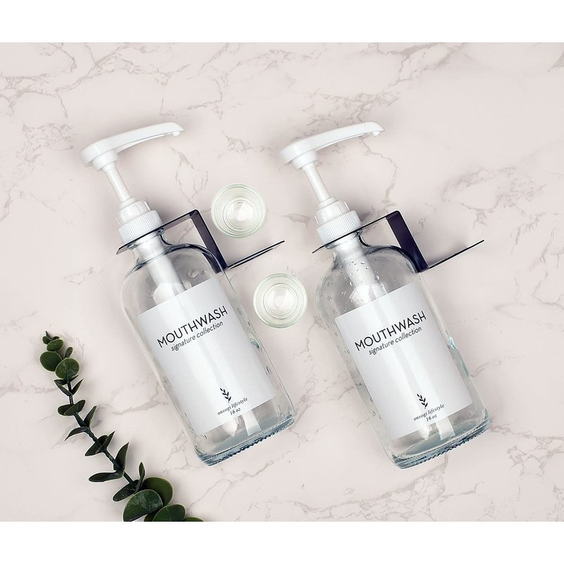 Onsogi Glass Mouthwash Dispenser with Cups Holders and Pumps, 16 Oz Rustic Boho Mouthwash Dispenser for Bathroom Farmhouse Decor - 2 Pack