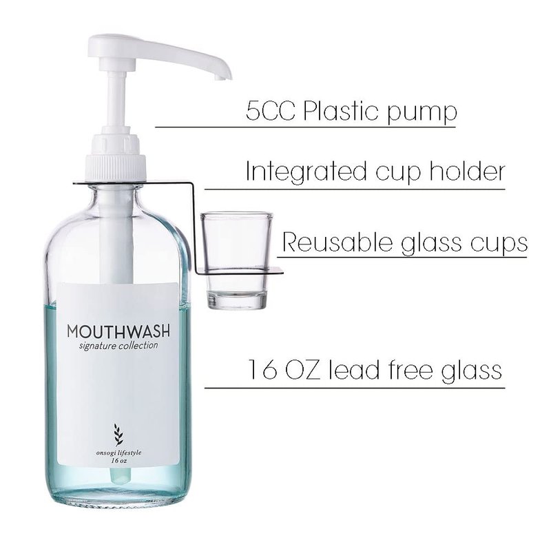- 2 pack reusable glass mouthwash cups inclueded