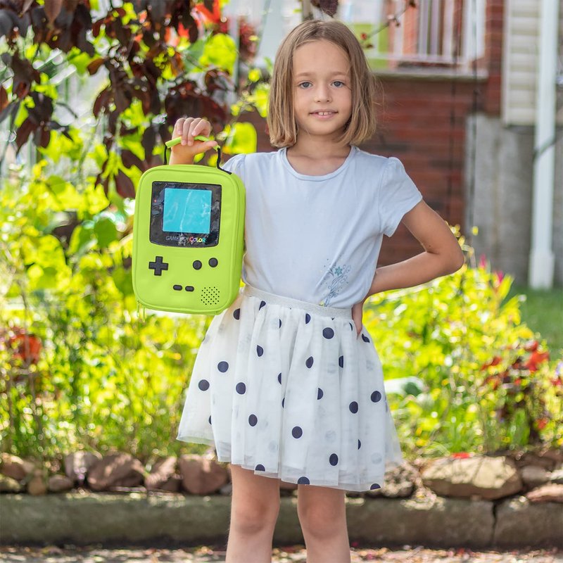 - 1. Funny game console design lunch bag with bright colors, multiple colors available for choice. A cute and cool lunch box for school boys and girls, and a nostalgic snack bag for gamer parents. It can be used for school, daycare, picnics, and holiday travel.