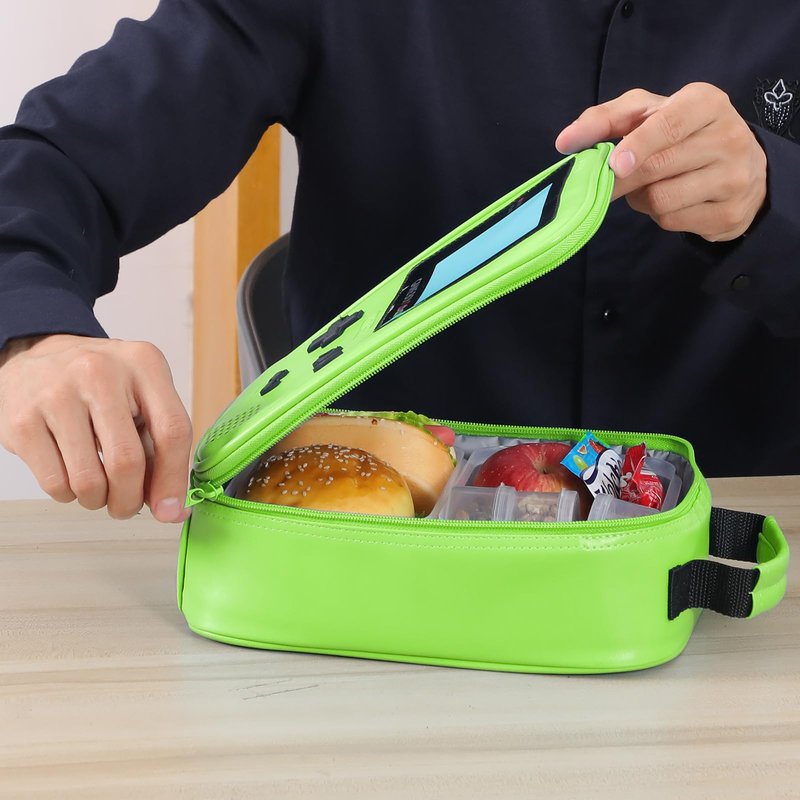 ONTESY Game Console Lunch Box Leather Reusable Lunch Bag Waterproof Thermal Insulated Mini Cooler for Boys Girls Kids Toddlers Teens for Picnic School Daycare (Green)
