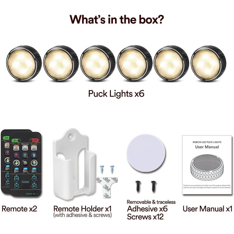 Onumii LED Puck Lights Battery Operated LED Under Cabinet Lighting Wireless Stick on Tap Lights with Remote Controll Color Changing Timer Function for Cabinets, Shelves, Closets - 6Pack Black
