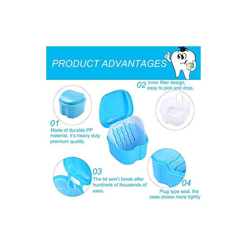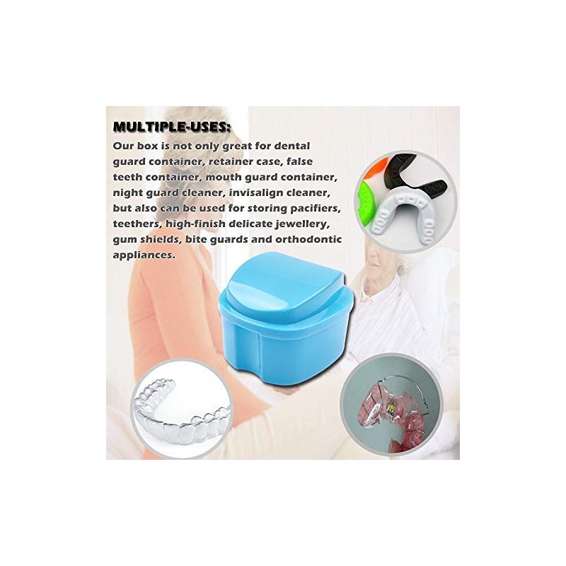 A perfect bath retainer for denture and orthodontic mouth guard to keep them clean and healthy, great for daily cleaning or overnight soaking and also portable for travel storage use.