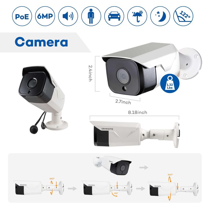 ONWOTE 6MP Super HD PoE IP Security Camera with Audio, Smart AI Human Detection, 3072x2048 6 Megapixels, Indoor/Outdoor, 100ft IR, IP66, Add on Camera to PoE NVR or Switch