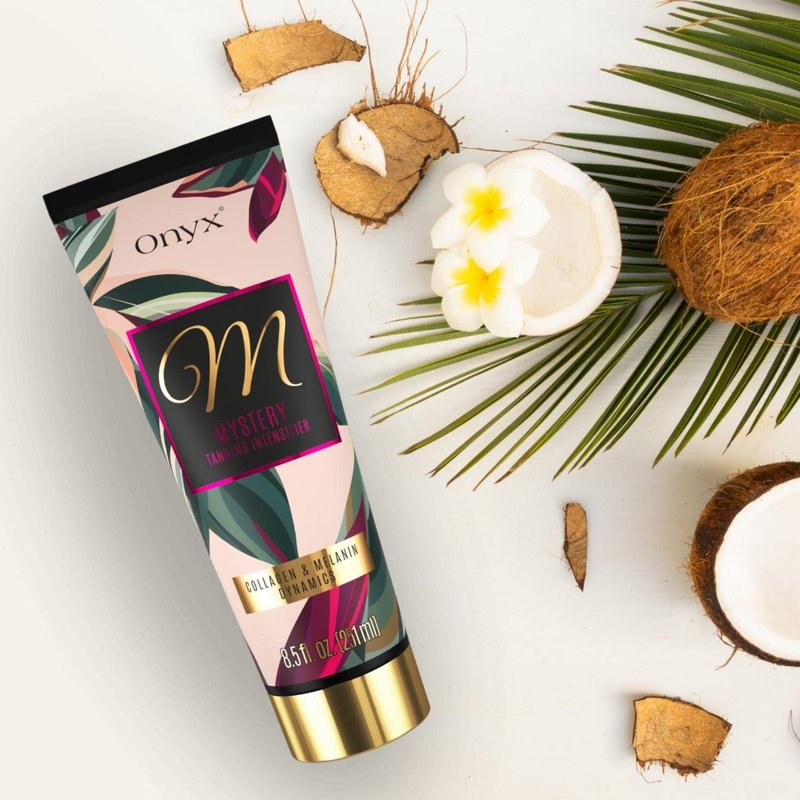 All you need for tanning lotion! A fast, long-lasting tan that is perfectly dark. White lotion prevents stains and streaks. This tan accelerator leaves your skin moisturized and smelling so good! Imagine your skin so soft and dark like you’ve always dreamed! Without that ugly tanning odor. But that’s not all… Mystery is not your typical tanning product. Thanks to the Collagen & Melanin Dynamics Complex which accelerates your dream tan effect, you get two benefits at the same time: your skin looks tan in no time and you can enjoy its fresh and plump look. But there’s more! Mystery accelerator tanning lotion is made specially to keep your skin properly moisturized. Moisturizing is essential for tanning! It keeps your skin not only in a good condition but also ready to be tanned. After each tanning session, your skin will be more radiant and tan than ever. Multiple accelerators, vitamins, and extracts - take your tan to the next level! Mystery is specifically designed for tanning beds but can be used as a tanning accelerator while lying on the beach. This tanning lotion with accelerator features an exclusive blend of Tyrosines, specially formulated to stimulate melanin in your skin and accelerate the natural tanning process. White lotion guarantees to keep your clothes stain-free! Mystery by Onyx is a tanning bed lotion without bronzer or any fake colorants. Bronze intensifying ingredients are suitable for all skin types and work without the use of any fake colorants. On top of that, Mystery is enriched with Vitamin E to protect it against free-radicals and an oil blend of 100% natural origin, featuring the skin-loving and pampering qualities of Coconut Oil, Monoi Oil, and Macadamia Oil.