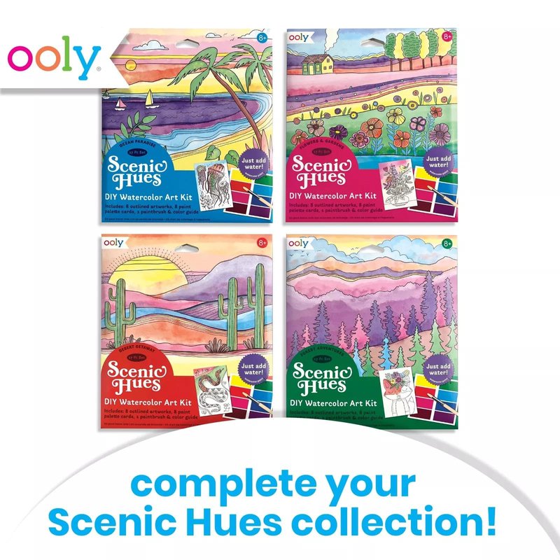 Ooly Scenic Hues D.I.Y. Watercolor Art Kit - Flowers & Gardens (17 PC Set)