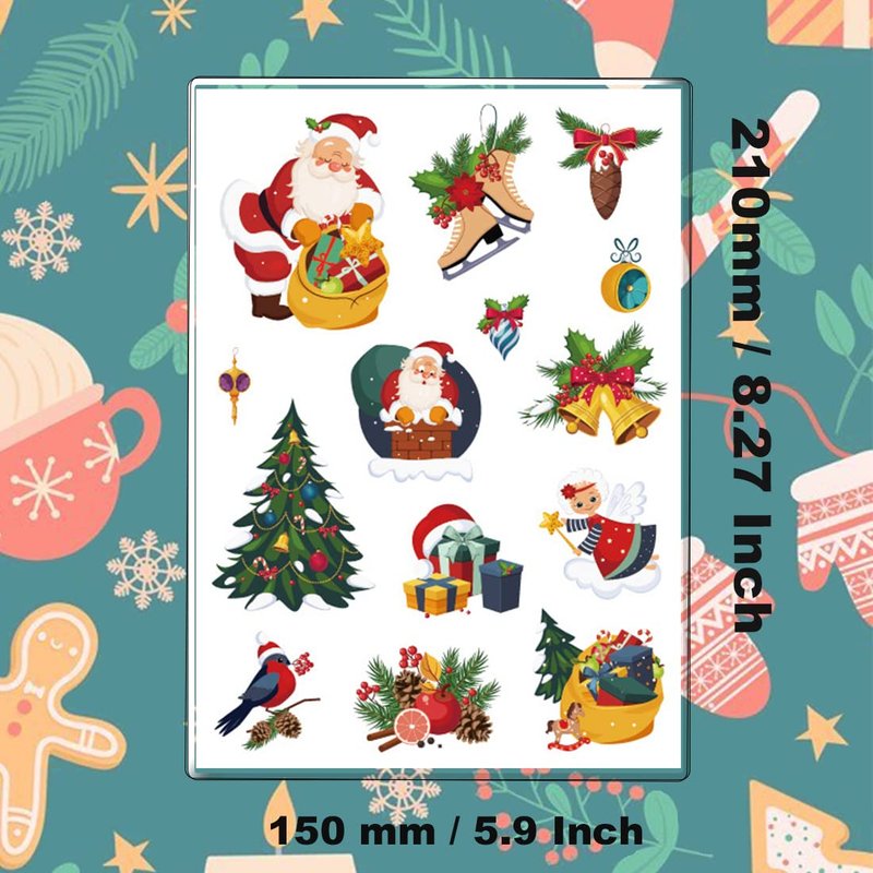 - ❤6 LARGE SHEETS (Xmas Tattoos For Children , 6.22X4.72"in)-- Each sheet features multiple large tattoos and is individually wrapped to be easily included in a kids stocking stuffers gift bag. Include Santa Claus, Snowman, Reindeer