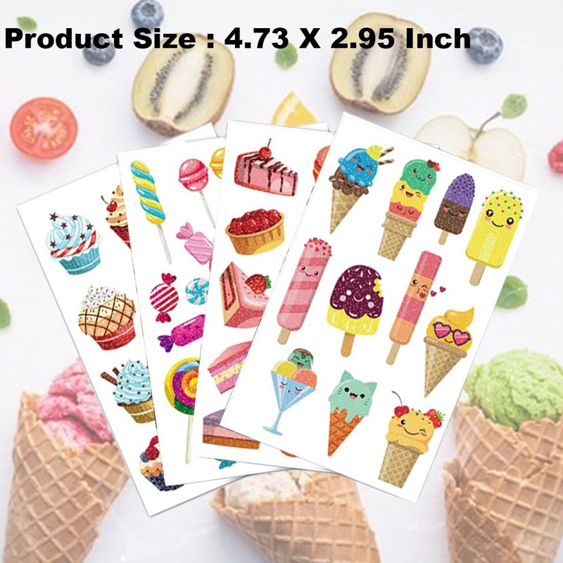 - ❤【Cute Accessories for Dessert Lovers】There are different elements in the dessert themed temporary tattoos, various dessert and other cool styles patterns. They are all durable and colorful! Kids will love: these different pattern design of ice cream.