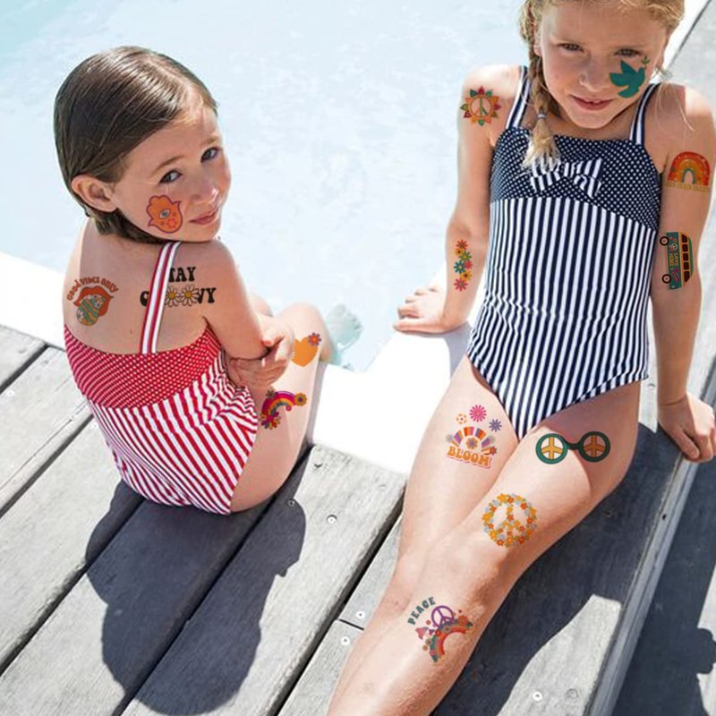 - ❤SUITABLE for VARIOUS OCCASIONS-- These fake tattoos can be used in various occasions, such as groovy theme birthday party supplies, party decorations, party favors, party bags, DIY decorations, summer holidays, pool and the beach or gift for kids and rewards.