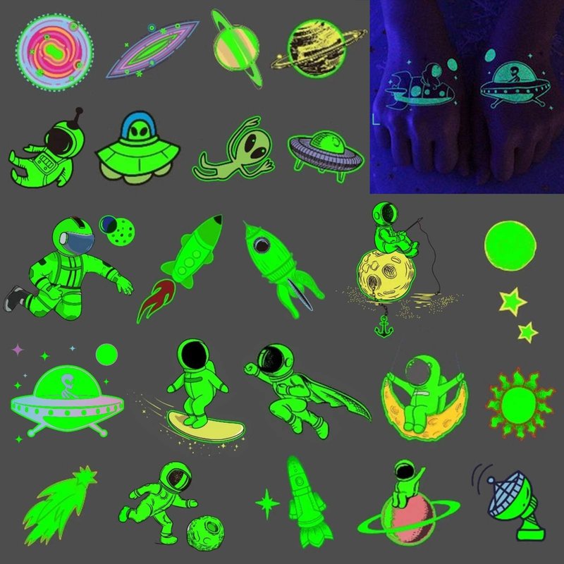 - ❤LUMINOUS UNIVERSE SPACE TATTOOS FOR KIDS-- Package contain 90 styles luminous temporary tattoos for kids , With these cute spcae theme temporary tattoos glowing,will provide big fun for both children and adults alike!