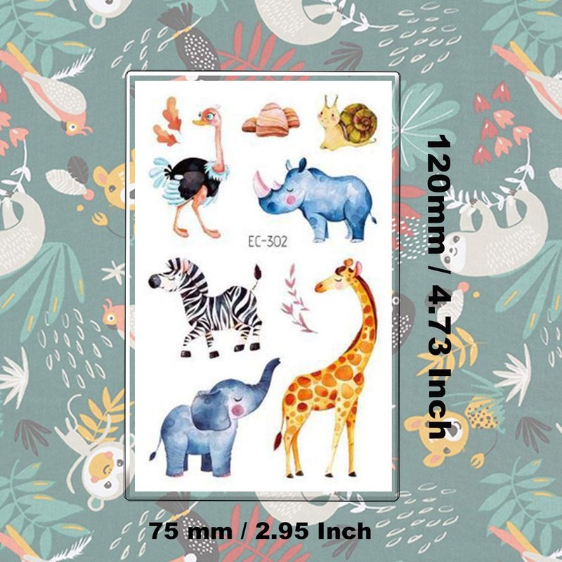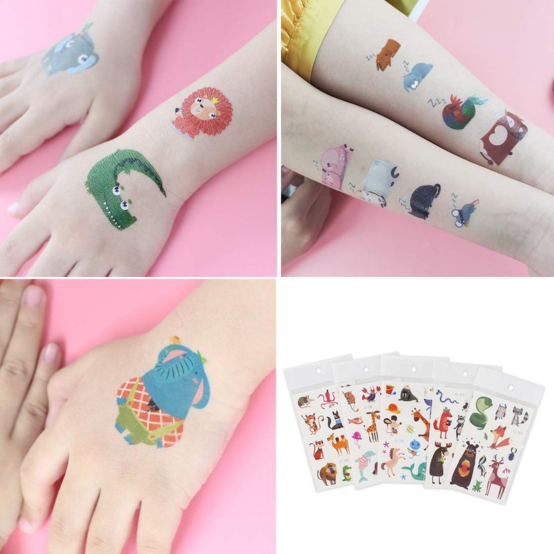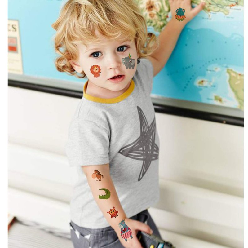 - ❤MORE SAFETY & HEALTHY CHOICE -- These animals temporary tattoos are made of high quality safety and green paper, Non-allergenic,Non-toxic and totally safe for your kid's skin. Simply wet the tattoo with water and stick transferred them onto your body, hands, faces and arm you like, Tattoos will last from 3 to 5 days ,it also can be easily removed with baby oil, makeup remover or rubbing alcohol.