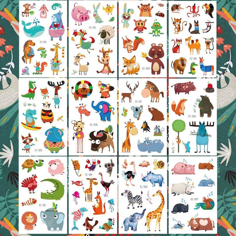 - ❤COOL GIFT FOR KIDS -- Popular hit with the kids. These temporary tattoos are perfect for a party! You can choose the pattern you like and create your own style. Designs feature lion, elephant, giraffe, whale, dolphin, tiger, zebra, penguin, fox, cat, dog, owl, koala bear, panda, turtle, monkey, sheep, deer, crocodile, peacock, pony horse, pig, duck, chicken, and more.