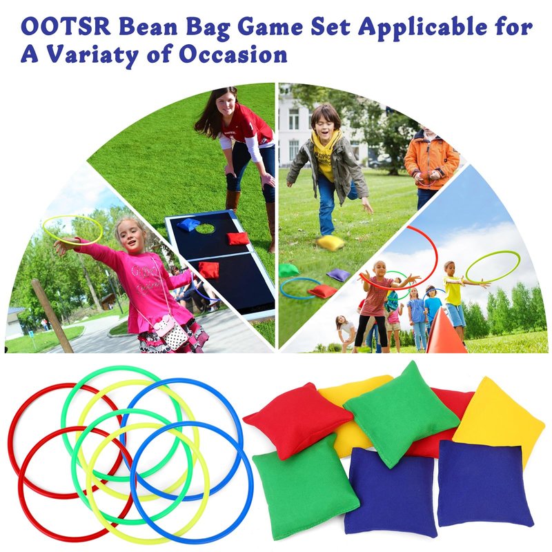 OOTSR 16pcs Nylon Bean Bags Plastic Rings Game Sets for Kids Ring Toss Game Booth Carnival Garden Backyard Outdoor Games Speed and Agility Training Games(8x8cm Bean Bag)
