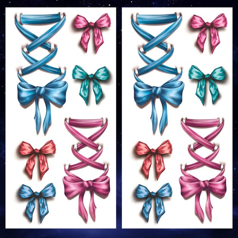 Oottati 2 Sheets Colorful Ribbon, Blue Pink 3D Bow Tie Leg Shoelace Waterproof Arm Hand Temporary Tattoo Stickers Look Real and Last Long