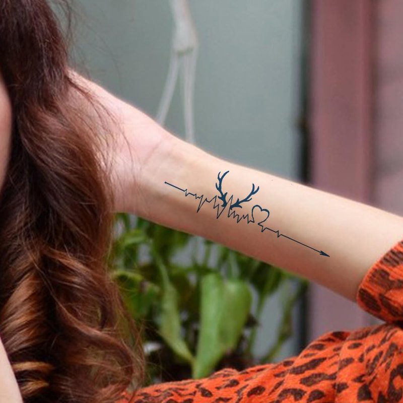 Oottati 2 Sheets Tiny Fake Semi Permanent Waterproof Temporary Tattoos Stickers 100% Plant-Based Ink Realistic Heartbeat Antler