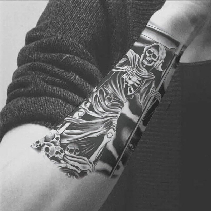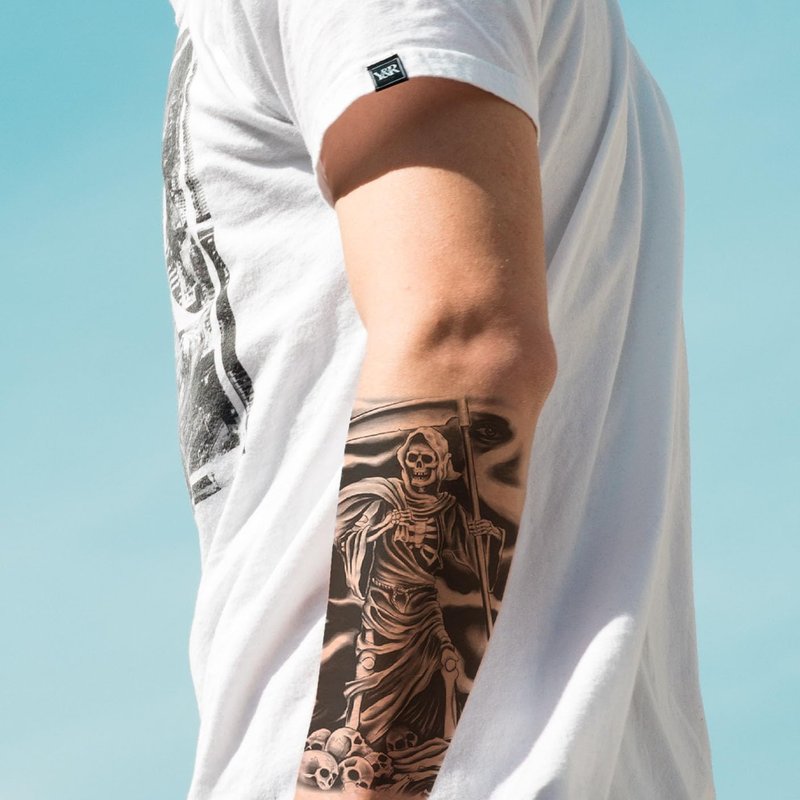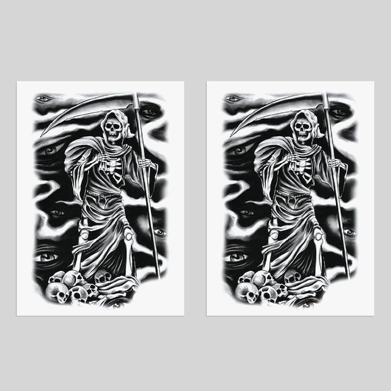 Oottati 2 Sheets Waterproof Arm Temporary Tattoo Stickers Death Skeleton Skull Grim Reaper God Sickle Eye