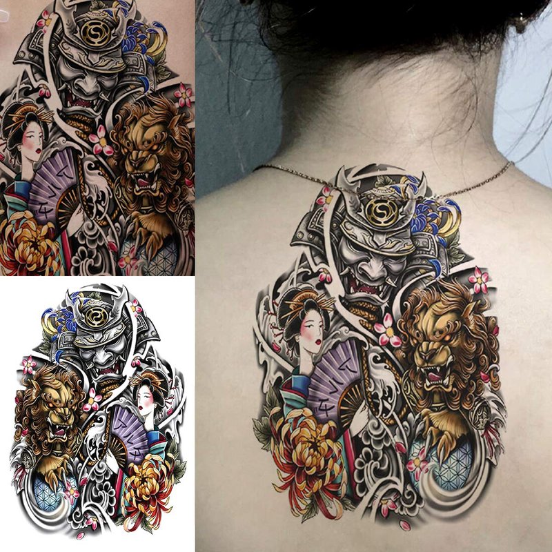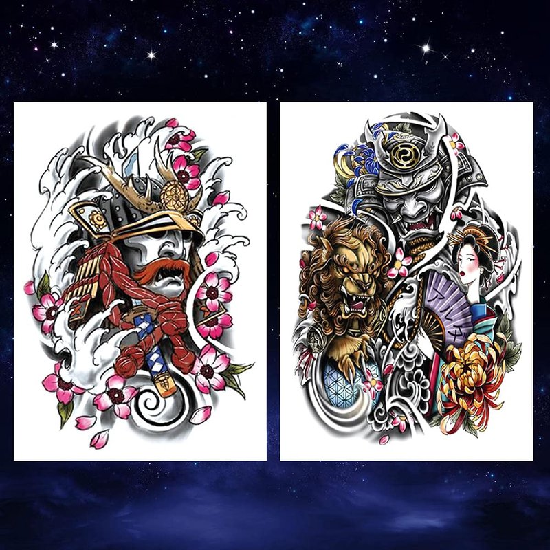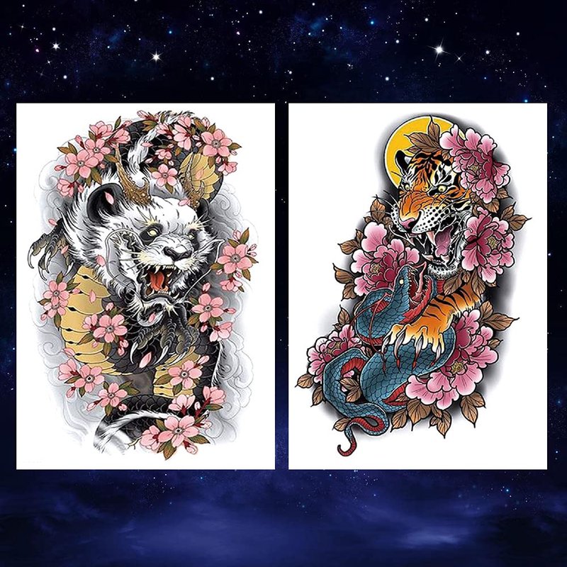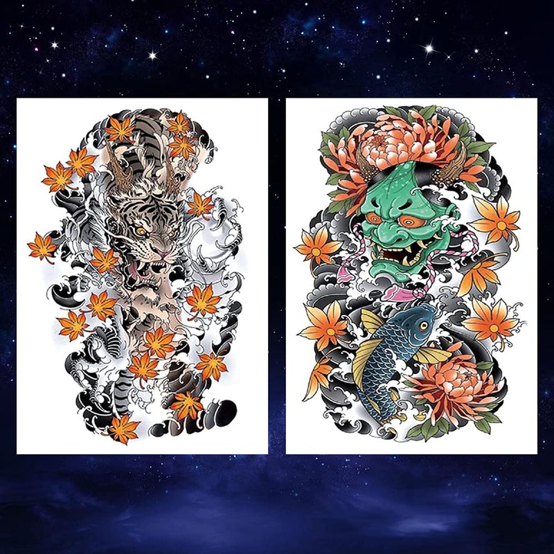 Oottati 6 Sheets Arm Fake Waterproof Temporary Tattoos Stickers Colorful Japanese Prajna Tiger Panda Lotus Koi Carp Samurai