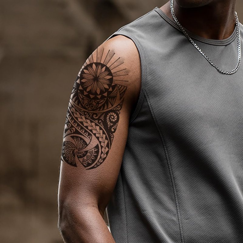 Oottati 6 Sheets Arm Leg Waterproof Temporary Tattoos Shoulder Turtle Sun Eye Totem