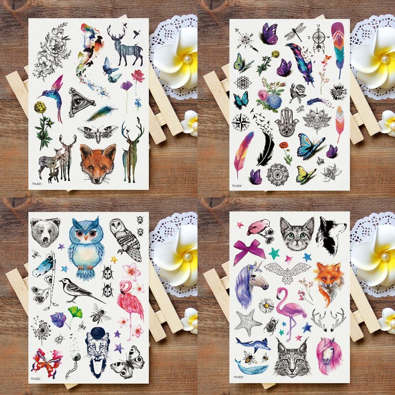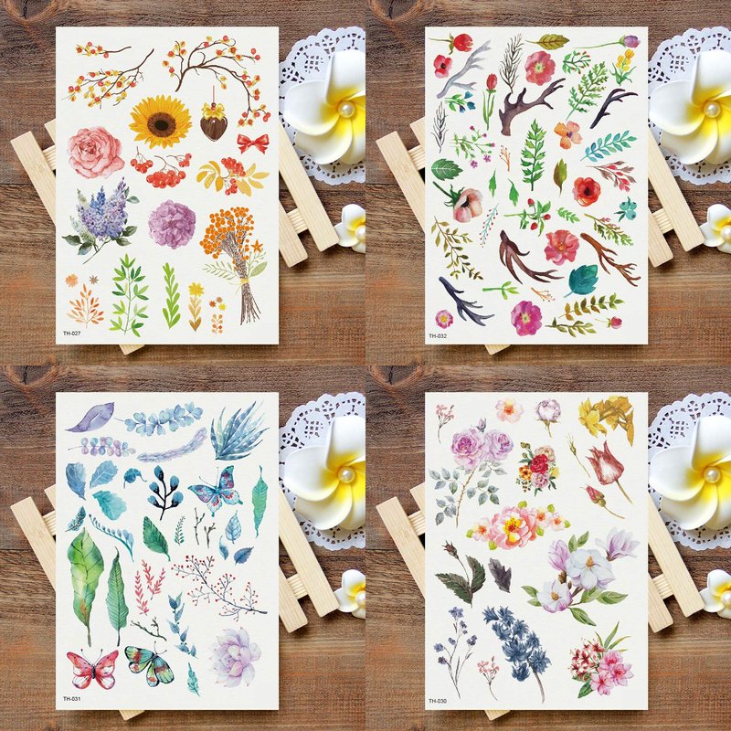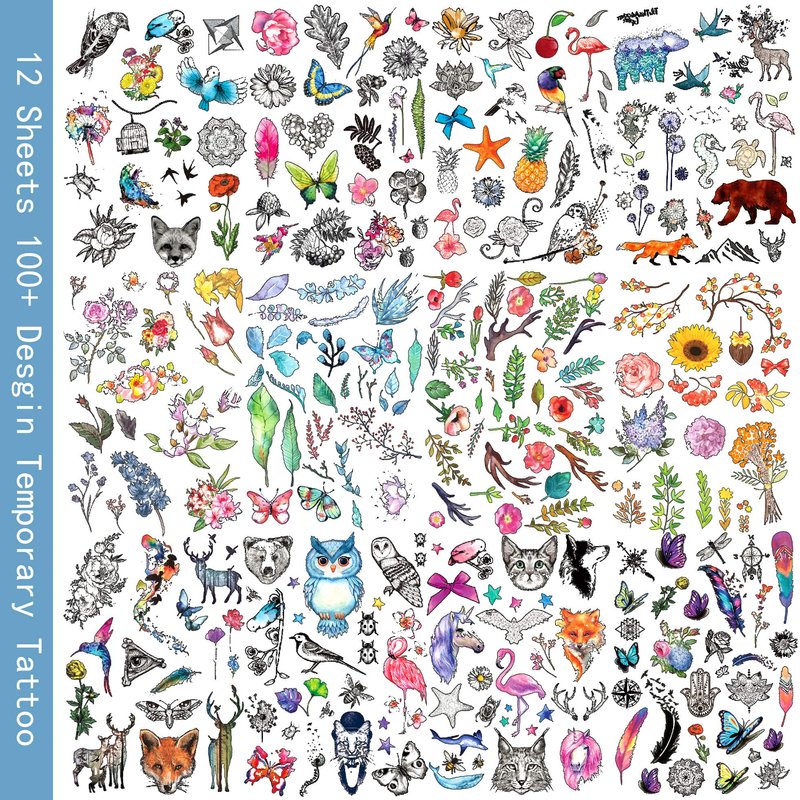 Oottati Waterproof 12 Sheets Summer 100+ Design Watercolor Painting Animal Flowers Leaves Small Fake Temporary Tattoo Stickers