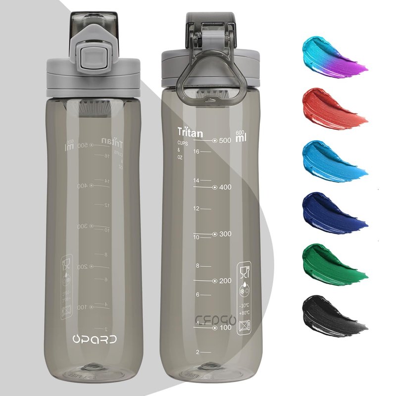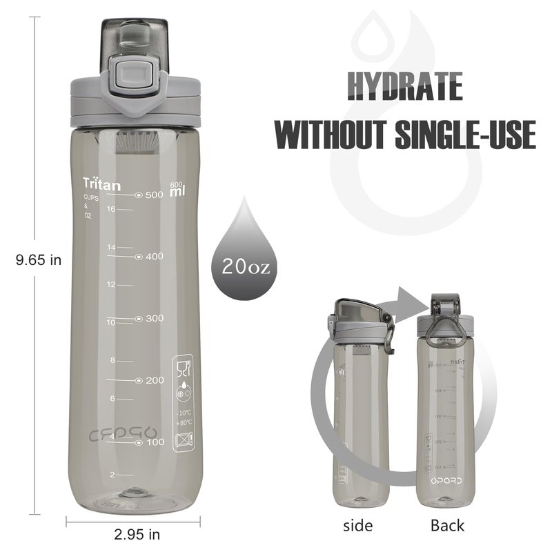 Opard Peak Water Bottle 20 Oz BPA Free Tritan Plastic Leak Proof Flip Top for School Kids Sports Gym Yoga Camping (Clear Grey)