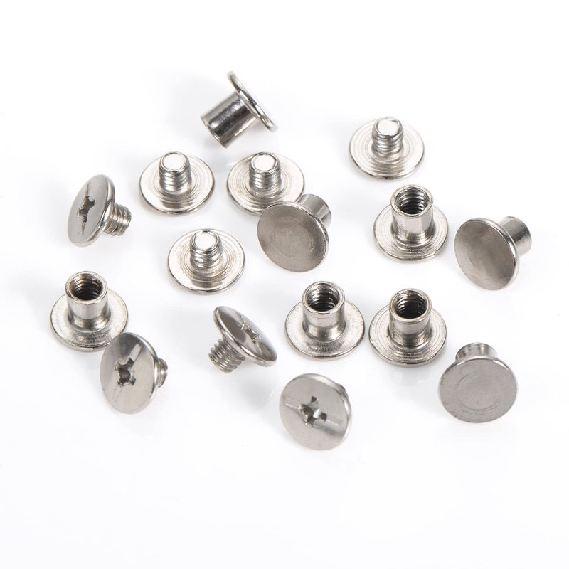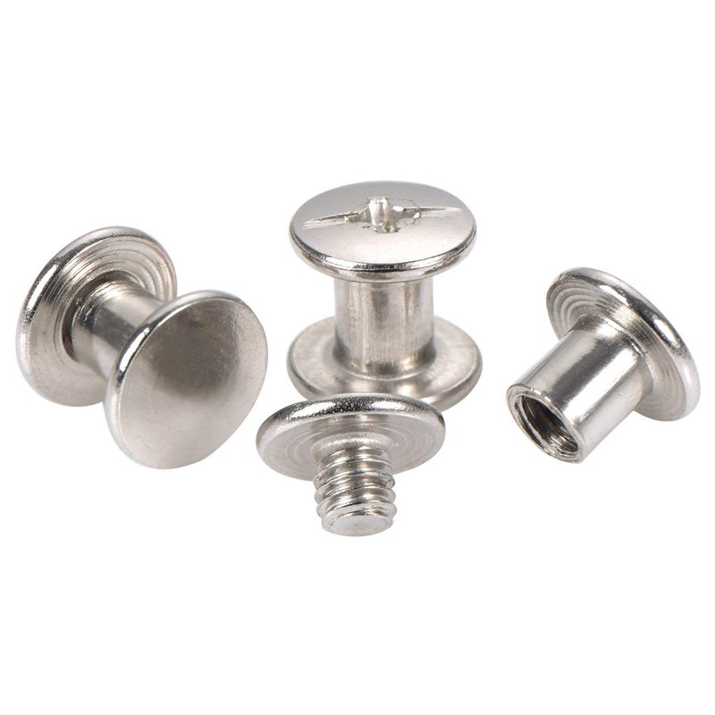 Open Back Chicago Screws Solid Belt Tack Screw Post Fastener Leather Repair Screws, 6 mm, Steel, 50 Sets