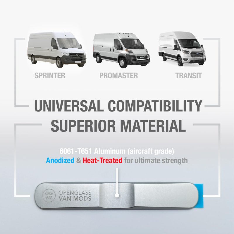 OpenGlass Van Mods - Sliding Door Stopper - Universal Fit for Sprinter, Promaster, Transit & Campervans - High-Grade Aluminum Van Door Stop, Van Accessories for Privacy w/Easy DIY Install, No Glue