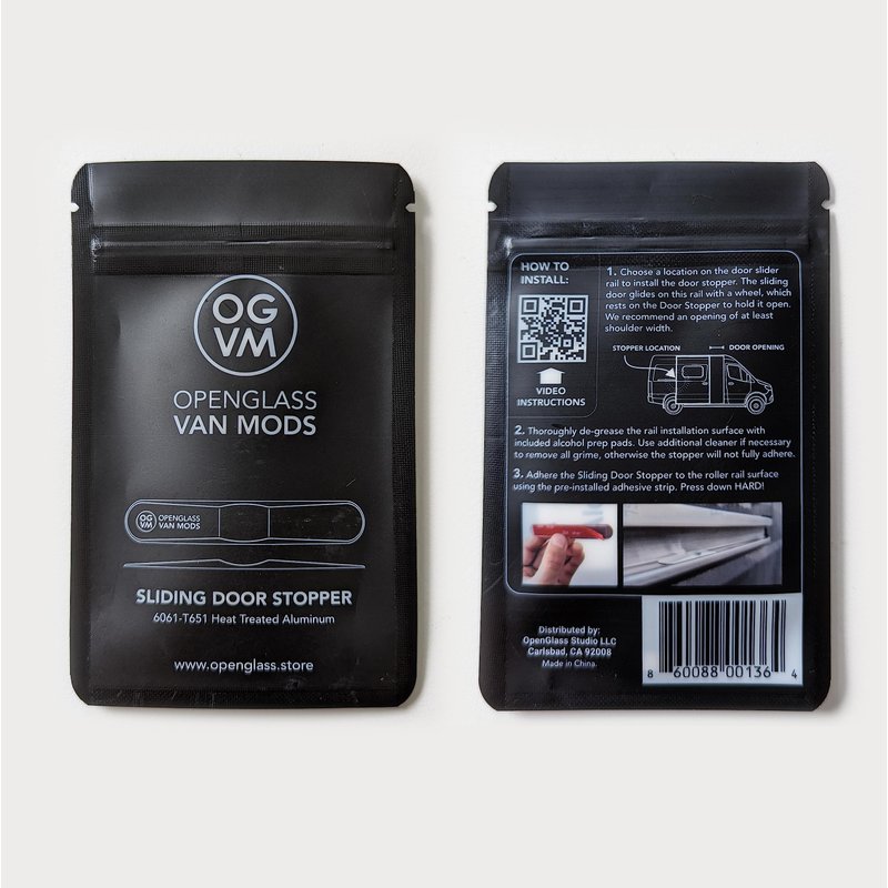 Privacy Made Easy Adding vanlife essentials to your rig has never been easier, thanks to OpenGlass Van Mods’ thoughtfully designed and effective van sliding door stopper. This van sliding door stop enables you to set an additional door opening position other than fully closed or open. It’s the perfect camper accessory for getting in and out of the van at campsites, camping on uneven terrain or when on the go for more privacy. This door stopper is precision CNC machined out of heat-treated 6061-T651 aircraft-grade aluminum for ultimate durability in the outdoors. Installation requires no glue, but instead a convenient "band-aid" style adhesive strip, which is recessed inside a pocket to allow for a flush and instant installation. Unlike other types of camper van accessories, this van sliding door stop is designed to be universal fit. No more brand specific Ford Transit Connect accessories or Sprinter accessories, any vanlife lover will be able to use this on their rolling doors. With a solid design and build, campers should expect this van sliding door stop to last a lifetime as long as it stays installed on the van correctly. Make this your next sprinter van sliding door stop, install it now on your Ram Promaster 1500, or make this one of your next vanlife gifts for the traveler in the family. Watch our easy installation videos on our website or on our Brand Store. OpenGlass Van Mods for a Better Experience OpenGlass Van Mods was born out of our experience traveling in a Ram Promaster van. We design and build van life essentials that make users safer, experiences more enjoyable, and life easier.