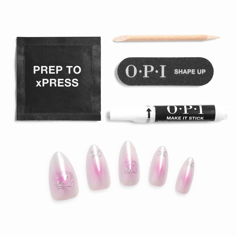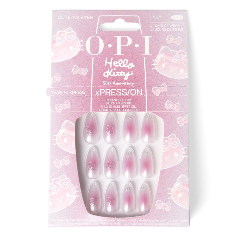 OPI xPRESS/ON Cute as Ever | Bright Pink Long Almond Press On Nails | With Nail Glue | Hello Kitty Limited Edition Collection
