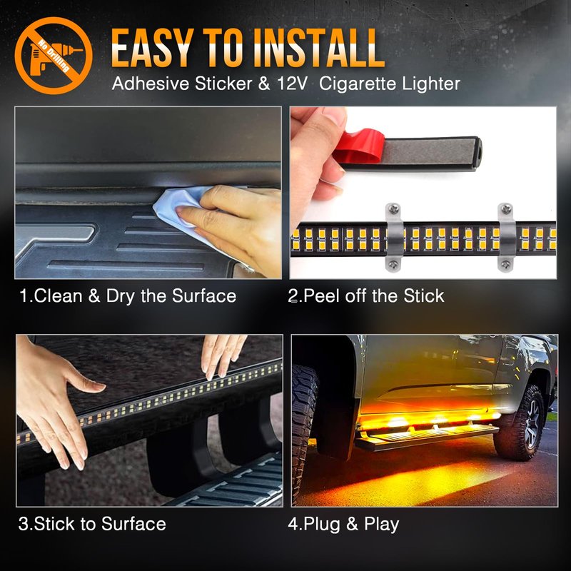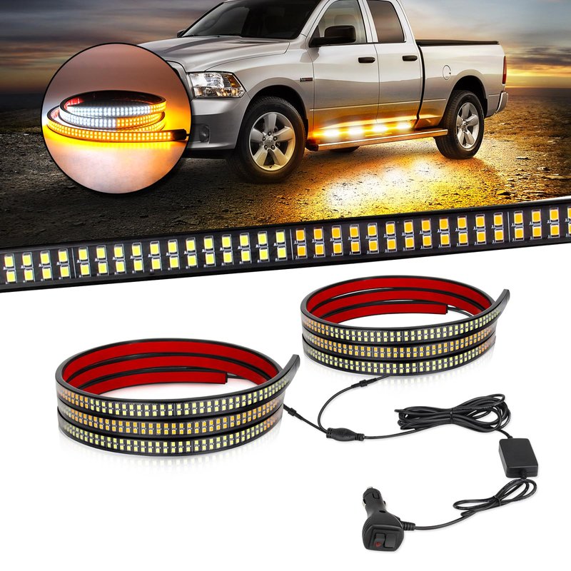 - SUPER VISIBILITY:Amber white running board emergency strobe lights are equipped with 1152 high brightness LEDs,More brighter and more effective than standard Led Strobe Lights,creates high visibility during the day or at night,make your vehicle stand out on Road!