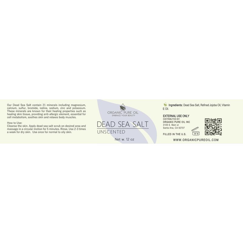 - Organic Pure Oil’s Amazing DEAD SEA SALT SCRUB Gently exfoliates your skin, Helps remove dead cells from your skin by clearing out your skin pores, to leave your skin looking fresh and clean.