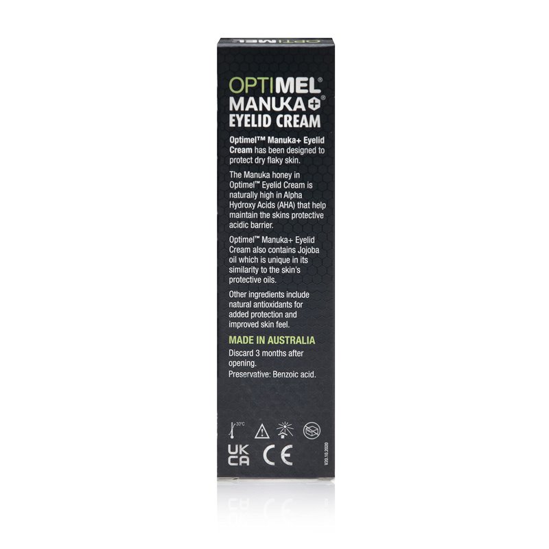 Optimel® Manuka+® Eyelid Cream, with Manuka Honey & Jojoba Oil, Restores Skin's Natural Structure, Soothes Flaky, Dry Skin - Ideal for Blepharitis, MGD, Seborrheic Dermatitis, Rosacea, & Eczema, 15g