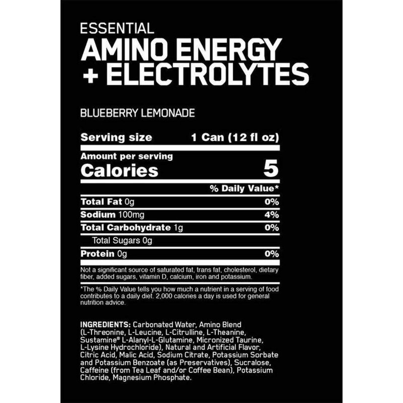 Optimum Nutrition Amino Energy Sparkling Hydration Drink, Electrolytes, Caffeine, Amino Acids, BCAAs, Sugar Free, Blueberry Lemonade, 12 Fl Oz, 1 count (Packaging May Vary)