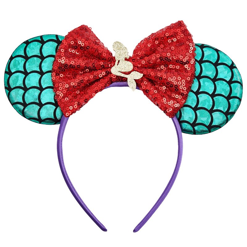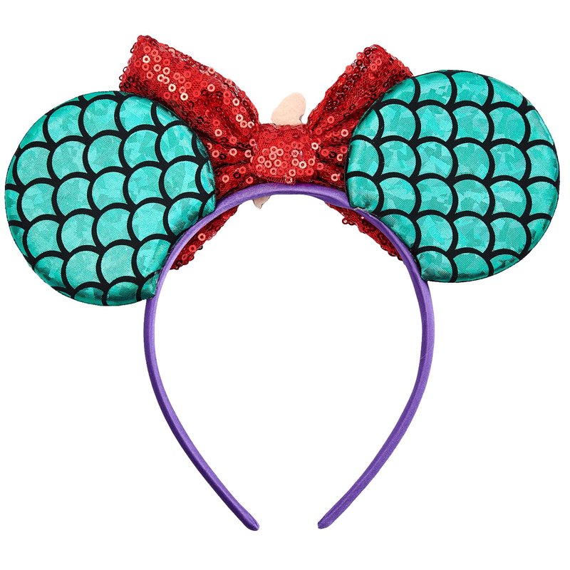 Opzzqz Mouse Ear Headbands for Women Giltter Bow Headband for Girls and Adult Birthday Party Decorations for Halloween Christmas (Mermaid01A)