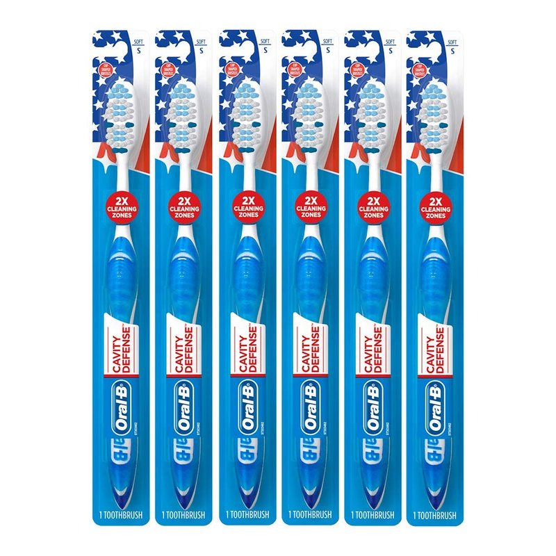 Oral-B Cavity Defense Toothbrush with Cup Shaped Bristles & Tongue Cleaner, Soft - Pack of 6