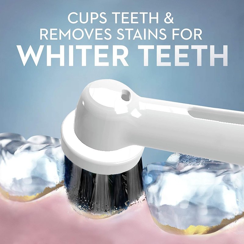 - Cup-shaped bristles remove stains, such as tea and coffee, for whiter teeth
