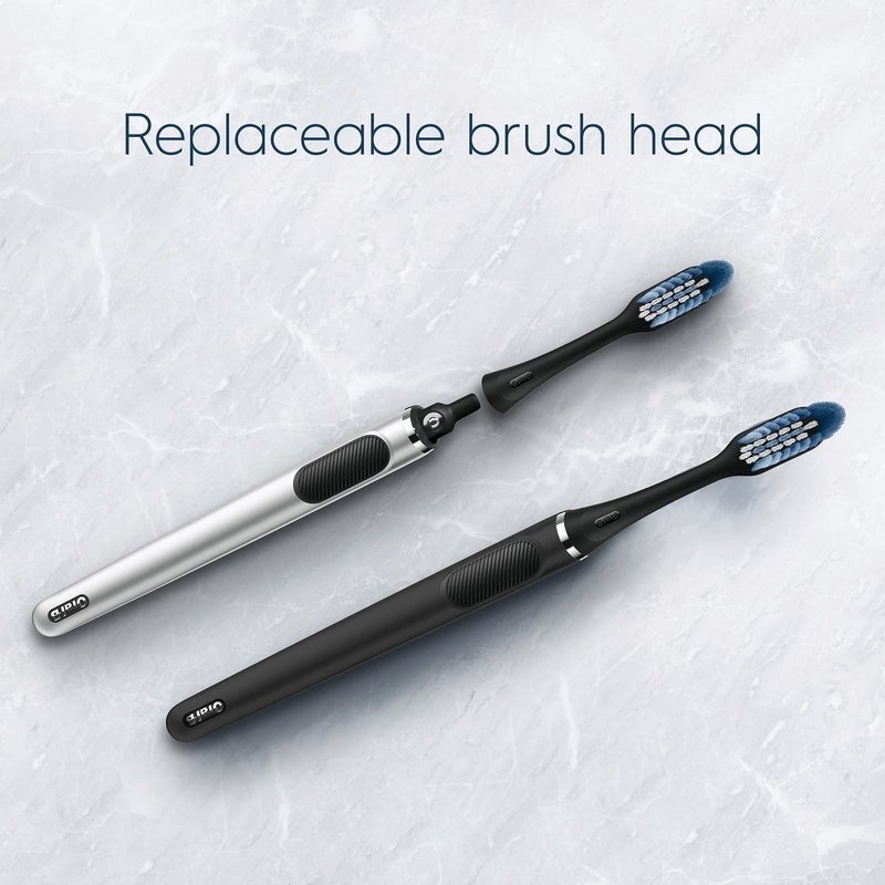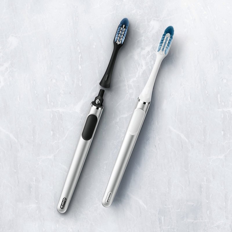 - Oral-B Clic features a replaceable brush head so that it uses up to 60% less plastic over 2 years* *Uses 60% less plastic over 2 years vs. regular manual toothbrush changed every 3 months as per dentist recommendation