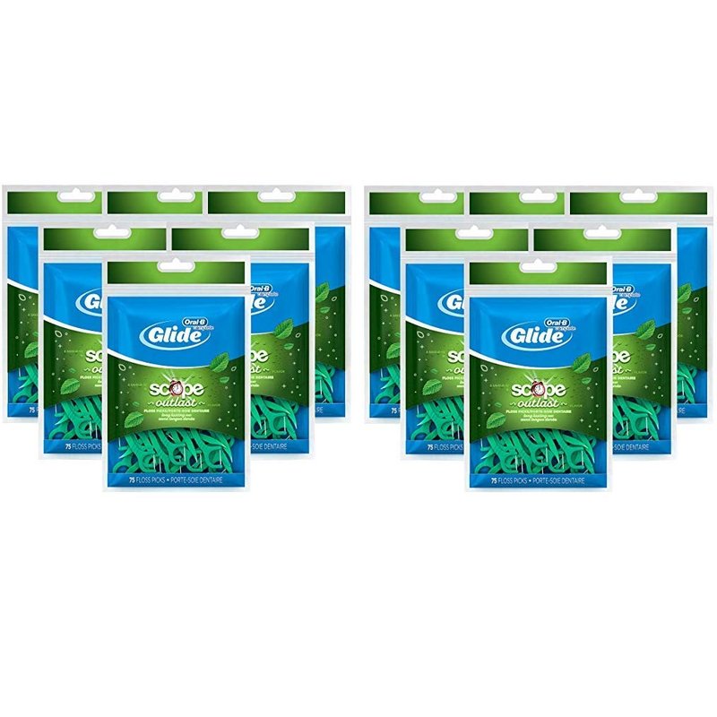 Oral-B Complete Glide Dental Floss Picks Plus Scope Outlast, Long Lasting Mint, 75 Dental Floss Picks, (12-Pack) - Oral-B Complete Glide Floss Picks + Scope Outlast Flavor combine the freshness of Scope flavor and the silky-smooth texture of Glide floss with the ease of a pick. Glide Floss Picks slide more easily in tight spaces and effectively help remove plaque and food particles between teeth and just below the gumline. Floss instructions: Hold the handle, and guide floss between teeth using a gentle back-and-forth motion. Move the floss up and down against the tooth to remove plaque and food particles above and below the gumline. Rinse floss as necessary (repeat for each tooth). Pick instructions: Place tip of pick between teeth at the gumline. Use a gentle in and out motion to remove plaque and food particles and stimulate gums. Rinse as necessary. Warnings: Adult supervision is recommended for children under 10. Gums may bleed the first few times you floss. If bleeding persists or gums remain red and swollen, see your dentist. Dispose of floss pick after use.