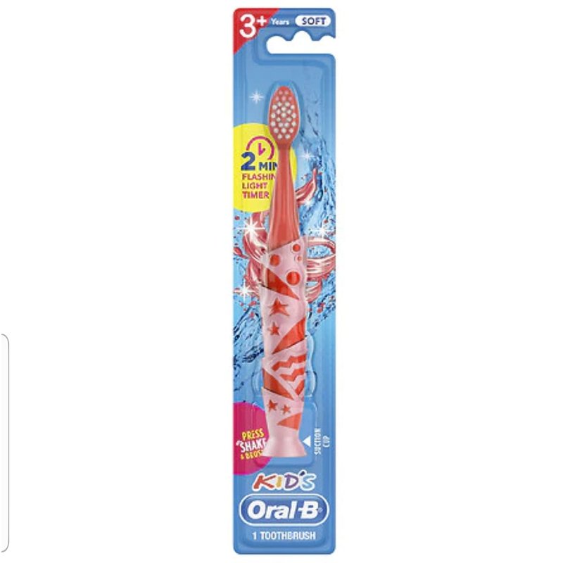 - Light up timer flashes for 2 minutes, indicating how long kids should brush each row of teeth