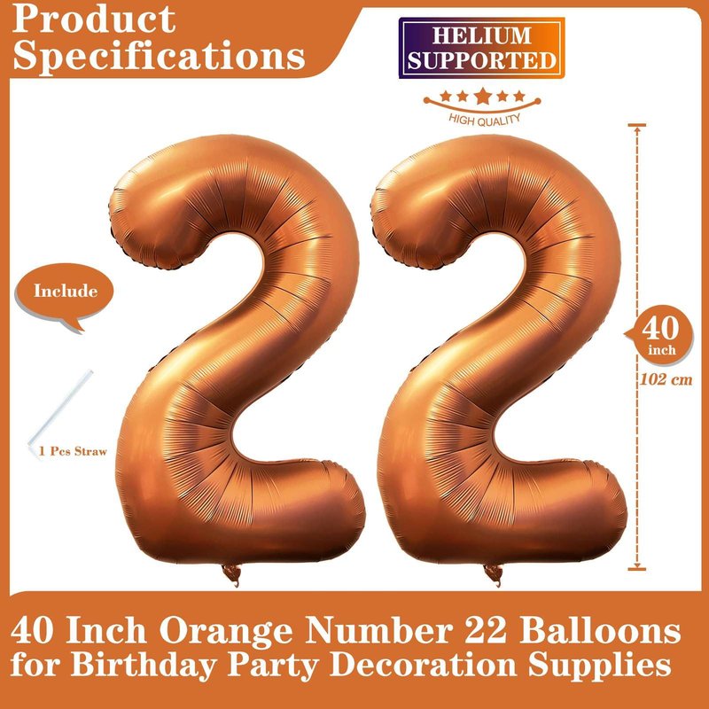 - 【Package Included】40 inch orange number 22 balloons (uninflated), 1 Pcs straw.