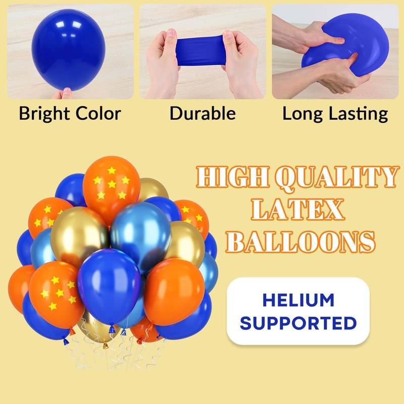 - WIDE APPLICATIONS: The charming orange blue balloon set is perfect for a wide range of occasions, including cartoon theme party,anime party decorations, dragon party decorations, baby shower, wedding, graduation, etc. These balloons add a touch of elegance and fun, enhancing the beauty and atmosphere of any celebration.