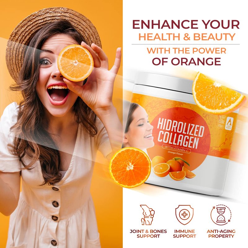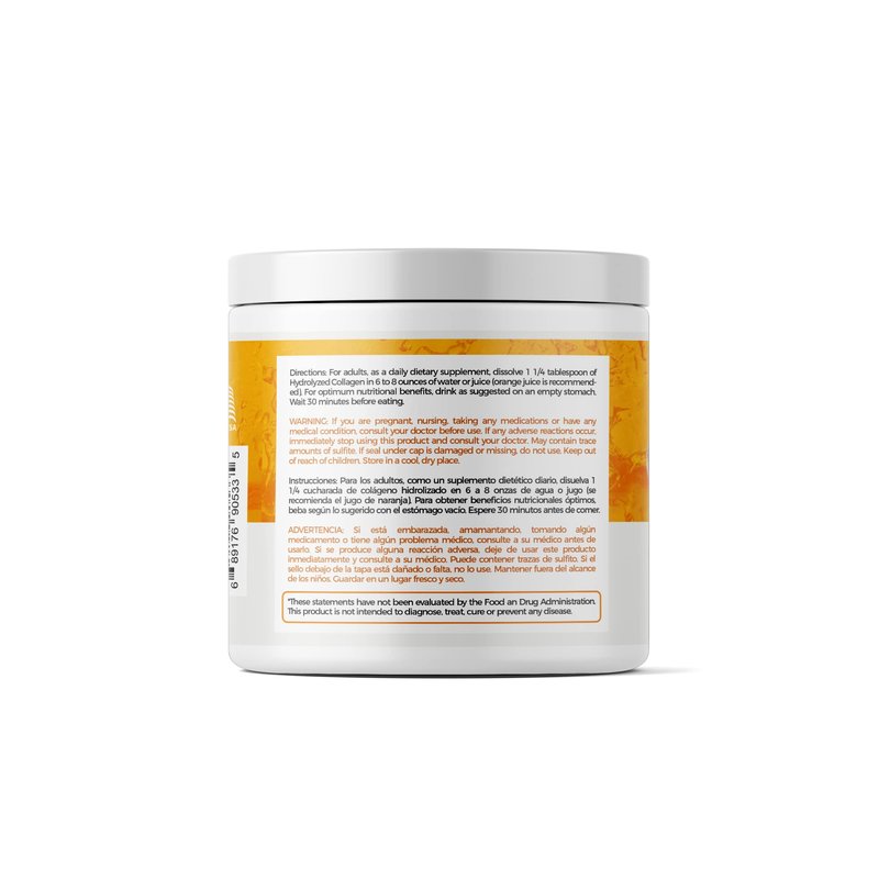 Orange Hydrolyzed Grass Fed Collagen with Vitamin C | Powder Supplement | Non-GMO Verified – 198gr