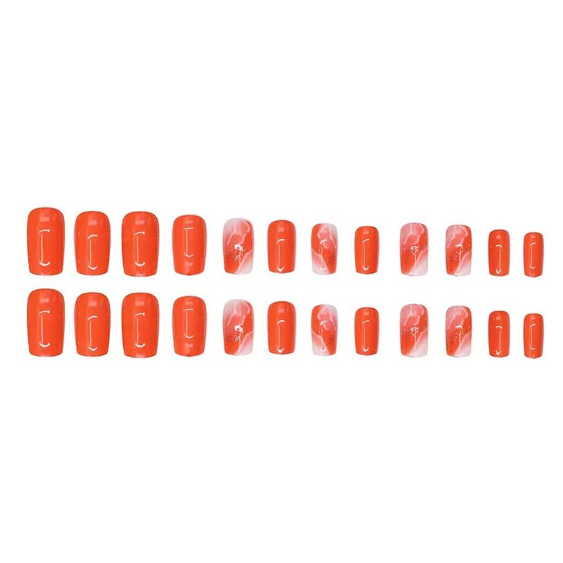- 【Widely Application】 Instead of spend lots time and money at nail salon, you can change your nails style in anytime and anywhere. Our orange acrylic press on nails suqare are suitable for dating, party, shopping etc. Orange fake nails is also a perfect gift for your partners, family and friends.