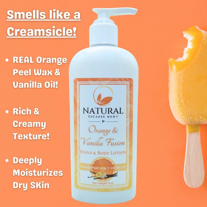 Orange & Vanilla Fusion Hand & Body Lotion, Natural Dry Skin Lotion, All Skin Types, Aloe Vera, Coconut Oil, Ceramides, Vitamin B5, Vitamin E 8 oz