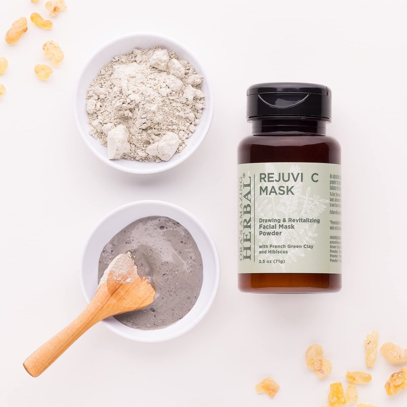 Ora's Amazing Herbal Rejuvi C Mask, Powder Mask, Detoxifying Face Mask Powder, French Green Clay Mask, Exfoliating Rosehip Seed Hibiscus with Vitamin C and Frankincense for Acne, Maskne