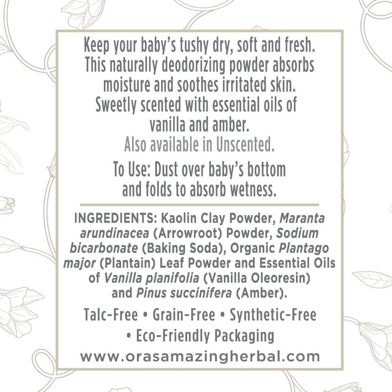 Ora's Amazing Herbal, Talc Free Baby Powder, Cornstarch Free Clay Based Powder, Real Vanilla Amber Natural Scent