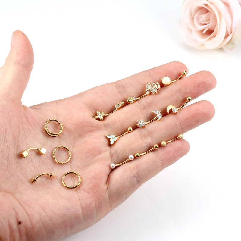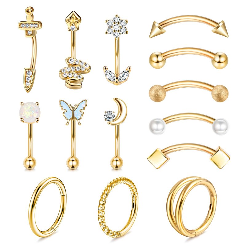 - ✦Eyebrow Piercing Jewelry Set✦You Will Get 11 pcs 16G Curved Eyebrow Rings And 3 pcs Cartilage Hoop Piercing in Different Styles, Which Are Designed with Butterfly, Snake, Moon, Flowers, Unique And Classic, More Choices for Everyday Wear.