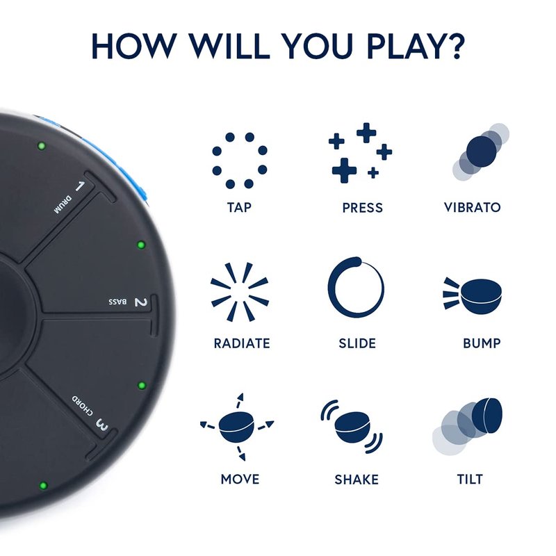 Orba is a handheld synth, looper, and MIDI controller that lets anyone make music immediately. With Orba’s integrated looper you can layer Drum, Bass, Chord, and Lead parts to create beats and songs on the fly. Play through the built-in speaker or use the ⅛” jack to connect headphones or amplifiers. Pair wirelessly to the Orba app to customize your instrument and share your creations with friends. PLAY WITH GESTURES Orba’s touch and motion sensors combine to capture even the most subtle micro-movements. The playing surface features eight highly touch-sensitive pads, and Orba has ten core gestures: Tap, Press, Spin, Radiate, Tilt, Shake, Slide, Vibrato, Move, and Bump. Each gesture can be used to control the onboard synth engine or your MIDI music software of choice. SMART DEVICE TECHNOLOGY Artiphon designed Orba with inspiration from traditional instruments, classic synthesizers, household objects, and modern mobile devices. The capacitive-sensing pads, haptic engine, and LED feedback incorporate the latest in mobile and gaming-controller technology. Orba features a proprietary on-board synth engine which includes sound design by esteemed DJ and engineer Richard Devine. MIDI CONTROL Use Orba to control your MIDI-based software and hardware instruments (via USB-C or wirelessly via Bluetooth MIDI). Use Orba with GarageBand, Ableton Live, Logic Pro X, Pro Tools, Cubase, FL Studio, as well as any MIDI-compatible mobile app. Orba is fully compliant with the new standard for MIDI Polyphonic Expression (MPE), making it capable of multiple independent note expressions.