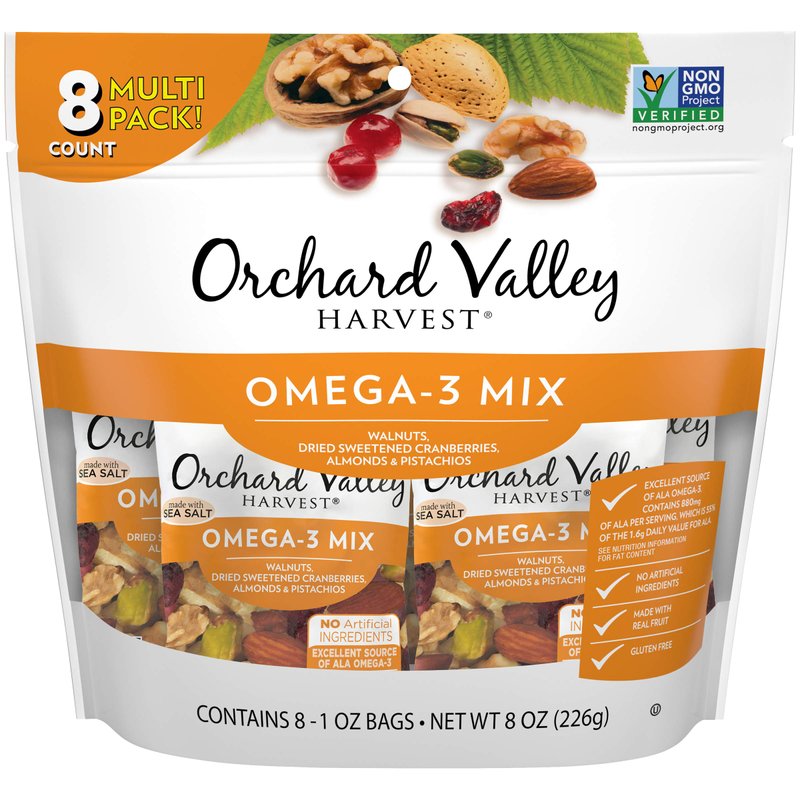 - Contains 1 bag of 8- 1 Ounce packs of Orchard Valley Harvest Omega-3 Mix