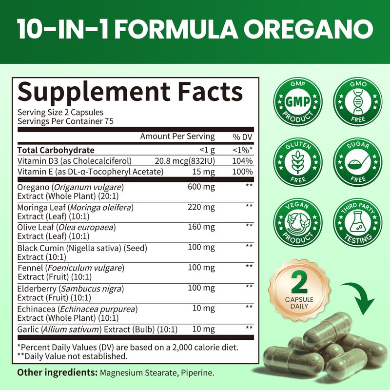 Oregano Oil Capsules with Black Seed Oil - Oil of Oregano Capsules with Moringa, Elderberry, Echinacea, Garlic, Fennel - Carvacrol & Thymol for Immune, Digestive & Antioxidant Support (75-Day Supply)