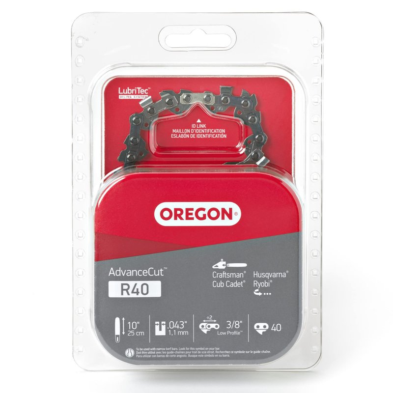 Oregon R40 AdvanceCut Chainsaw Chain for 10-Inch Bar – 40 Drive Link Replacement Chainsaw Blade, .043 Inch Gauge, 3/8 Inch Pitch, fits Remington, Husqvarna, Ryobi and more,Gray